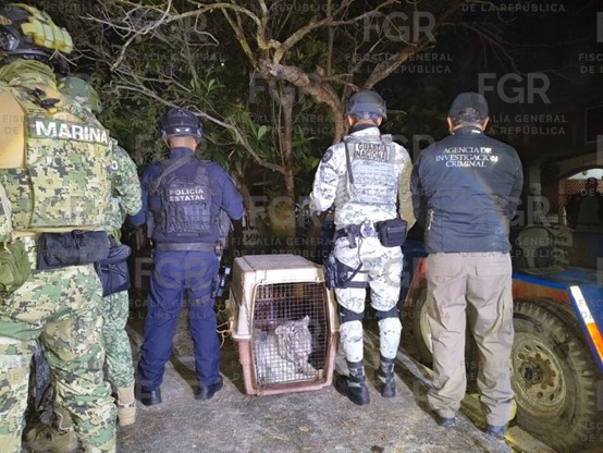 El operativo fue ejecutado por elementos de la Policía Federal Ministerial (PFM), en coordinación con peritos del Centro Federal Pericial Forense (CFPF), ambos de la Agencia de Investigación Criminal (AIC), quienes aseguraron dentro del inmueble, un tigre de bengala.