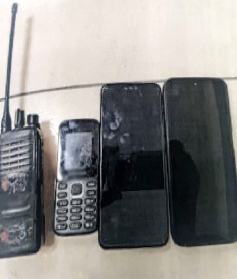un radio de comunicación y un pasamontañas.