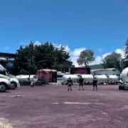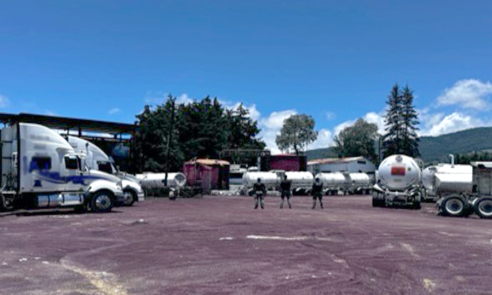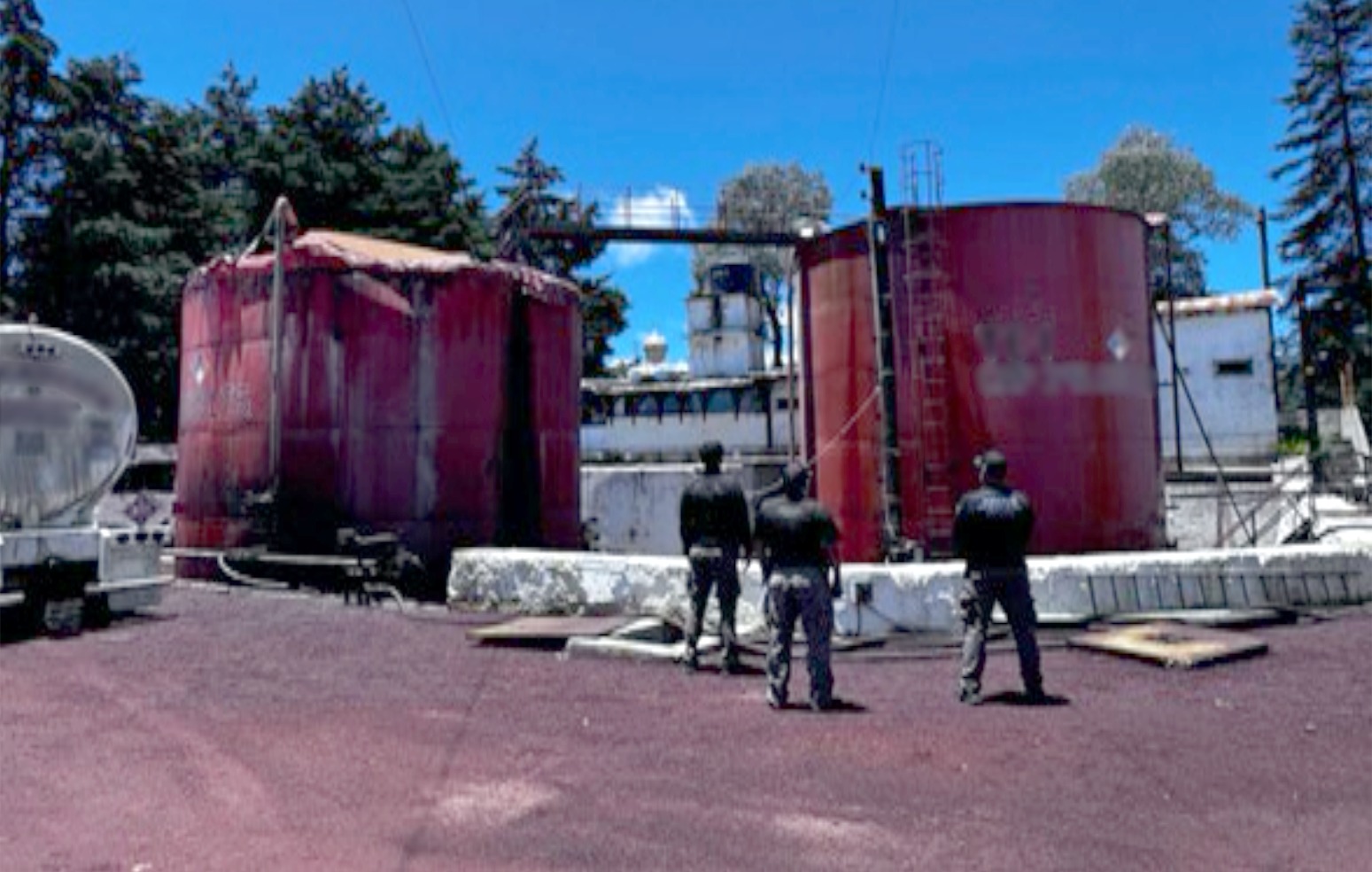 vehículos, tres cisternas, contenedores y un predio.