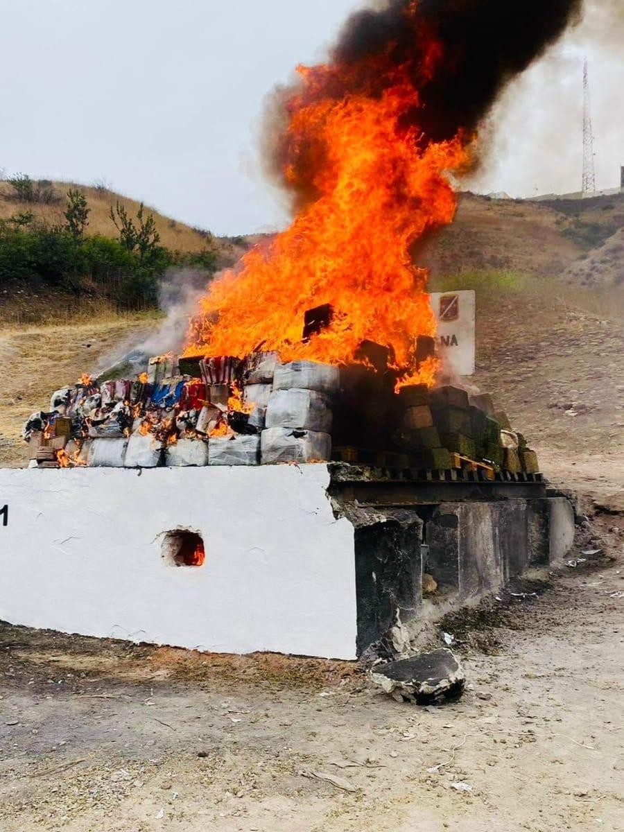 Lo incinerado incluyó, tres toneladas 130 kilos 33 gramos 700 miligramos de marihuana, dos toneladas 247 kilos 162 gramos 904 miligramos de clorhidrato de metanfetamina, 21 kilos 832 gramos de clorhidrato de diacetilmorfina y 22 kilos 978 gramos 400 miligramos de clorhidrato de cocaína.