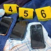 arma de fuego corta abastecida, cartuchos, teléfonos celulares, un cargador,