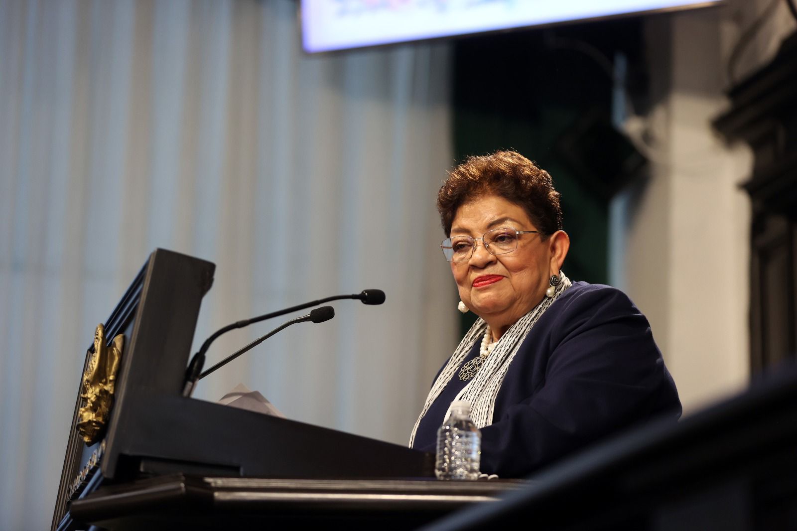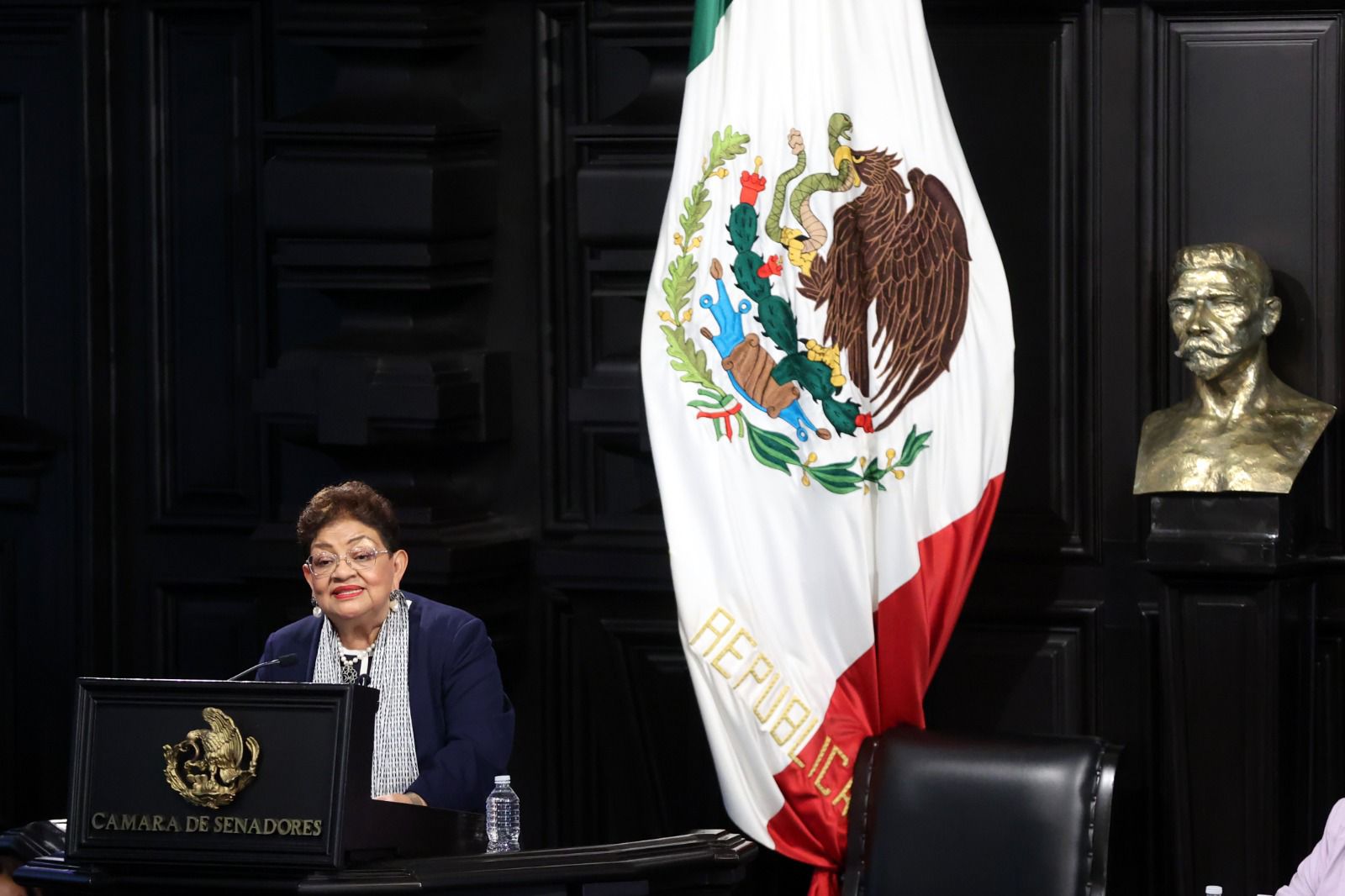 intervención, la presidenta de la Mesa Directiva de la Cámara de Senadores,