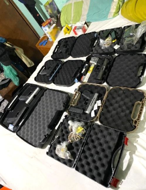 armas de fuego cortas, 17 cargadores, cartuchos de diversos calibres, cuatro