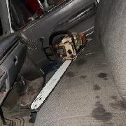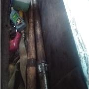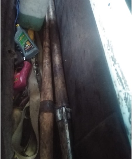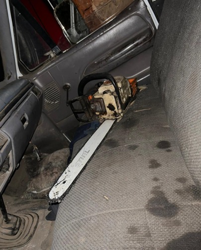 motosierras, tres palos (de madera) en forma de gancho, dos camionetas con