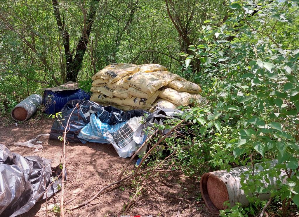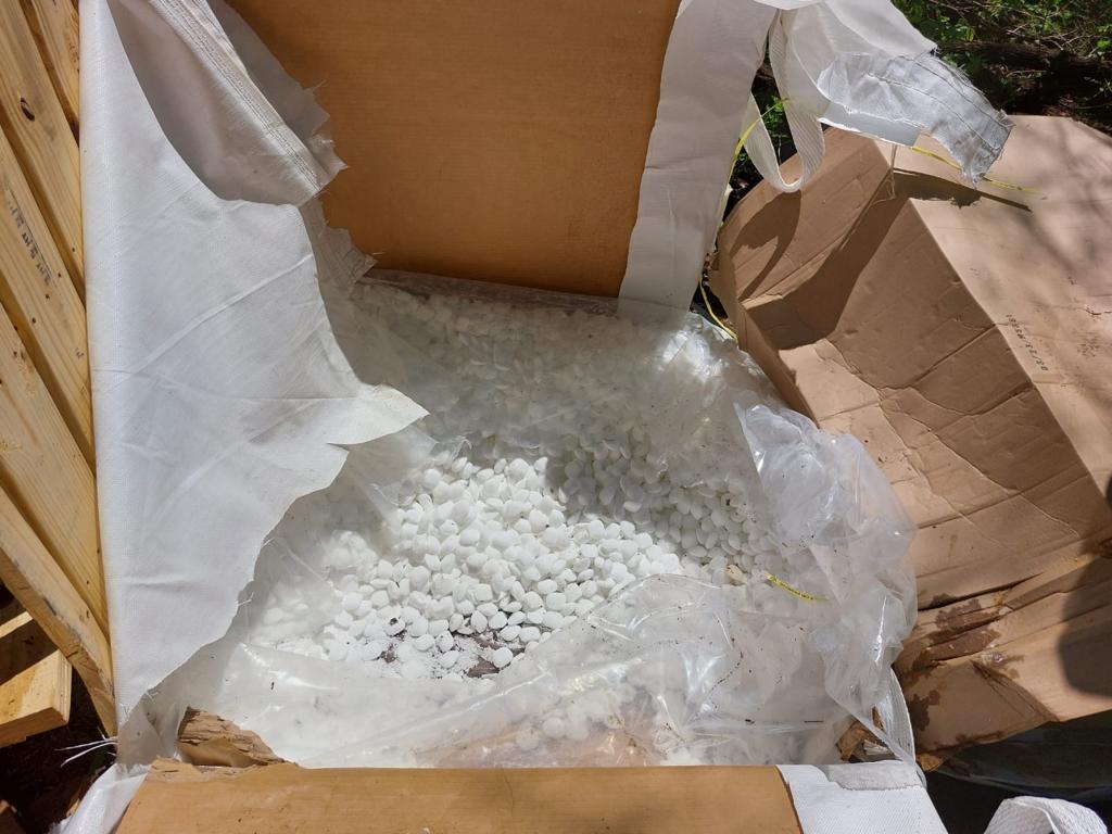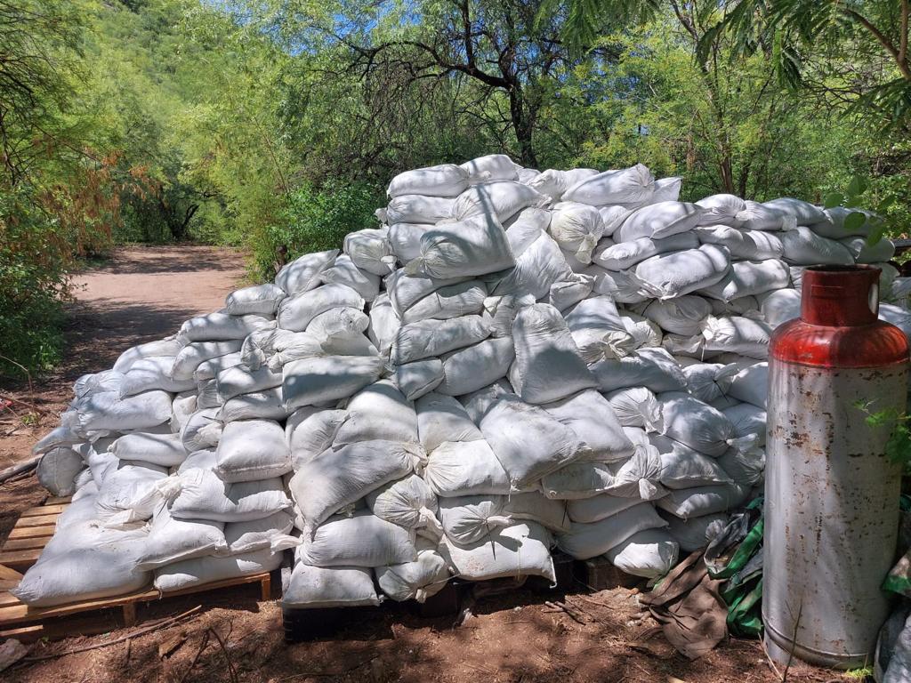 de ácido, diversos costales con un peso aproximado de tres mil kilogramos de