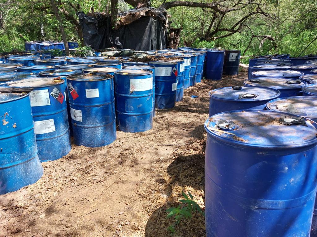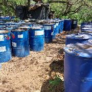200 litros con diferentes sustancias, al parecer acetona, tolueno o algún tipo
