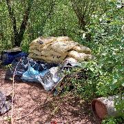 de sosa cáustica, tanques de gas, cajas que contenían papel aluminio, bidones y