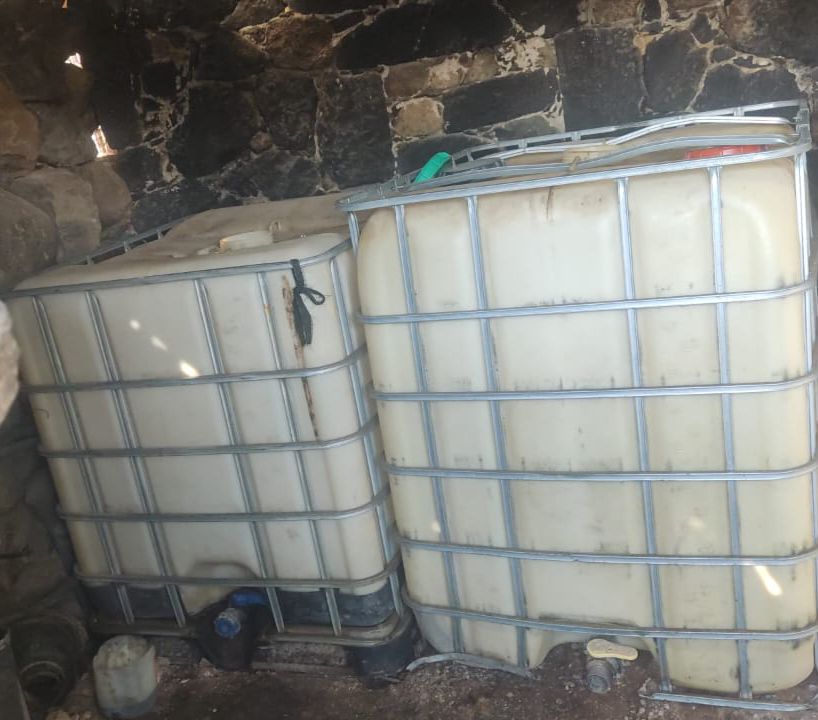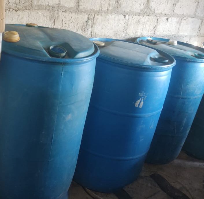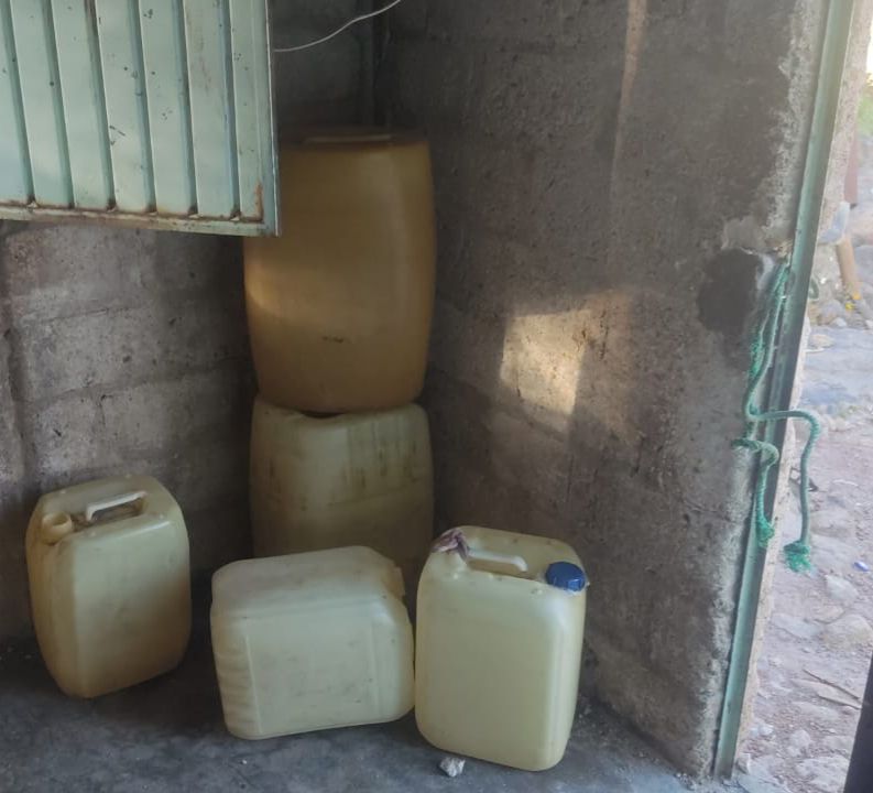 En el lugar se aseguraron dos vehículos tipo pick up, cuatro armas largas, dos plantas de marihuana, doce contenedores de diversas capacidades y aproximadamente 500 litros de hidrocarburo.
