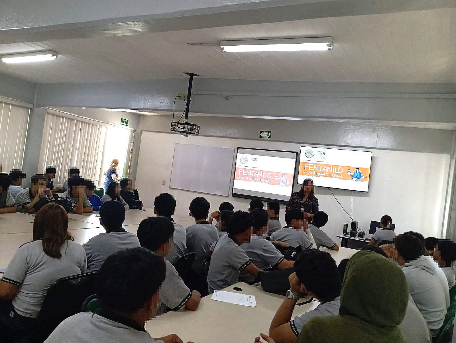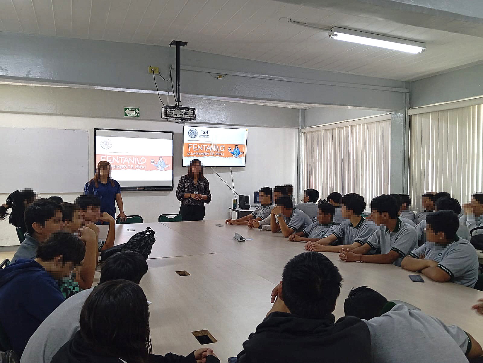 Con el objetivo de generar conciencia sobre la peligrosidad del fentanilo, la representante de la Unidad de Servicios a la Comunidad (USC) de la FGR en Coahuila, expuso el tema “Fentanilo ¡a la primera te mata!”, definiéndolo como un opioide sintético, aproximadamente 100 veces más potente que la morfina y 50 veces más potente que la heroína como analgésico y señaló que una dosis de dos miligramos es suficiente para provocar una sobredosis.