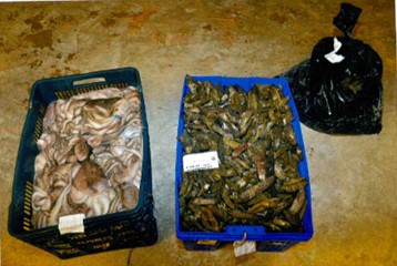 kilogramos de pepino de mar seco y 73 kilogramos de pulpo, especies acuáticas