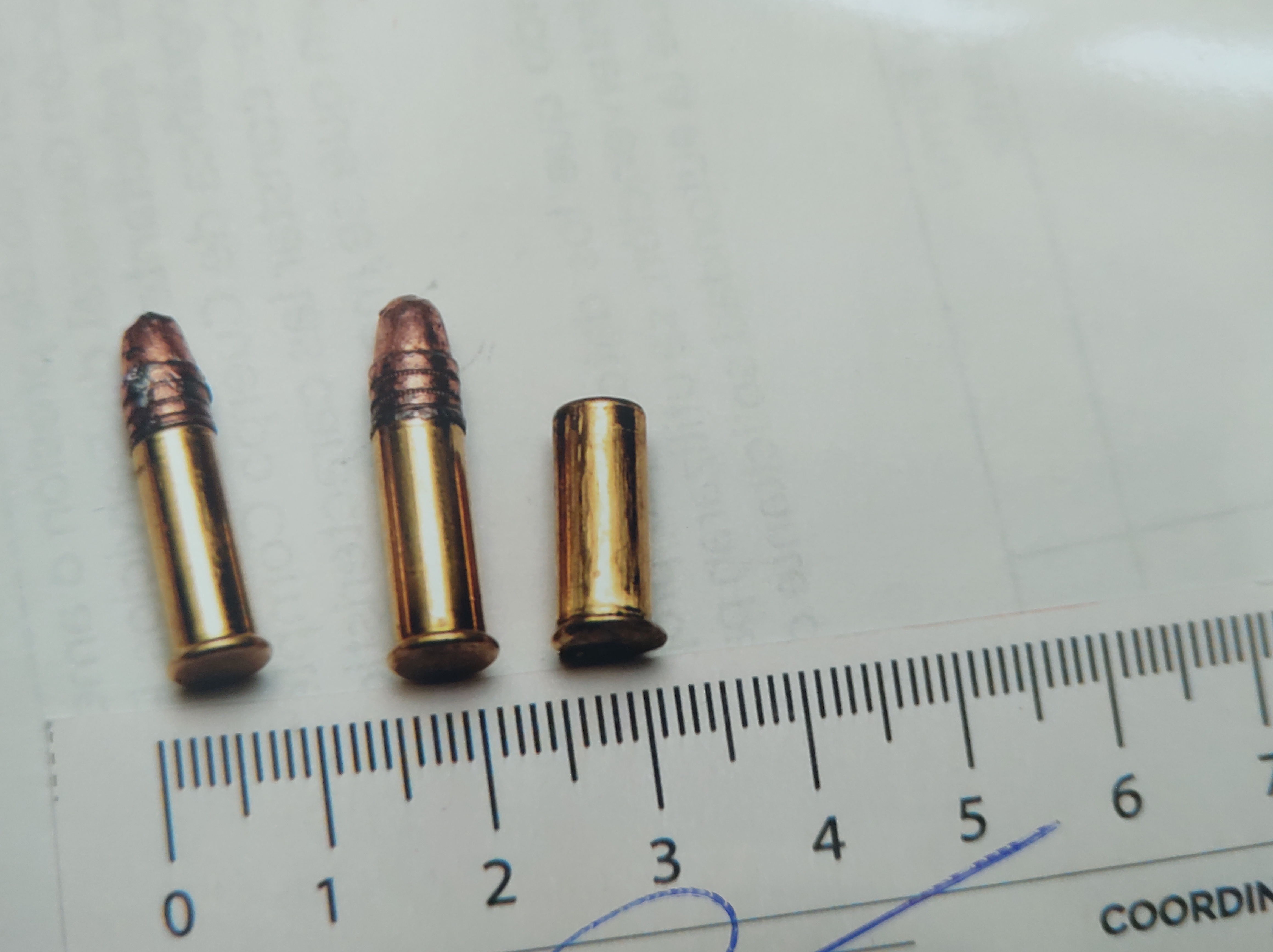 .22 milímetros, un cargador y dos cartuchos útiles.