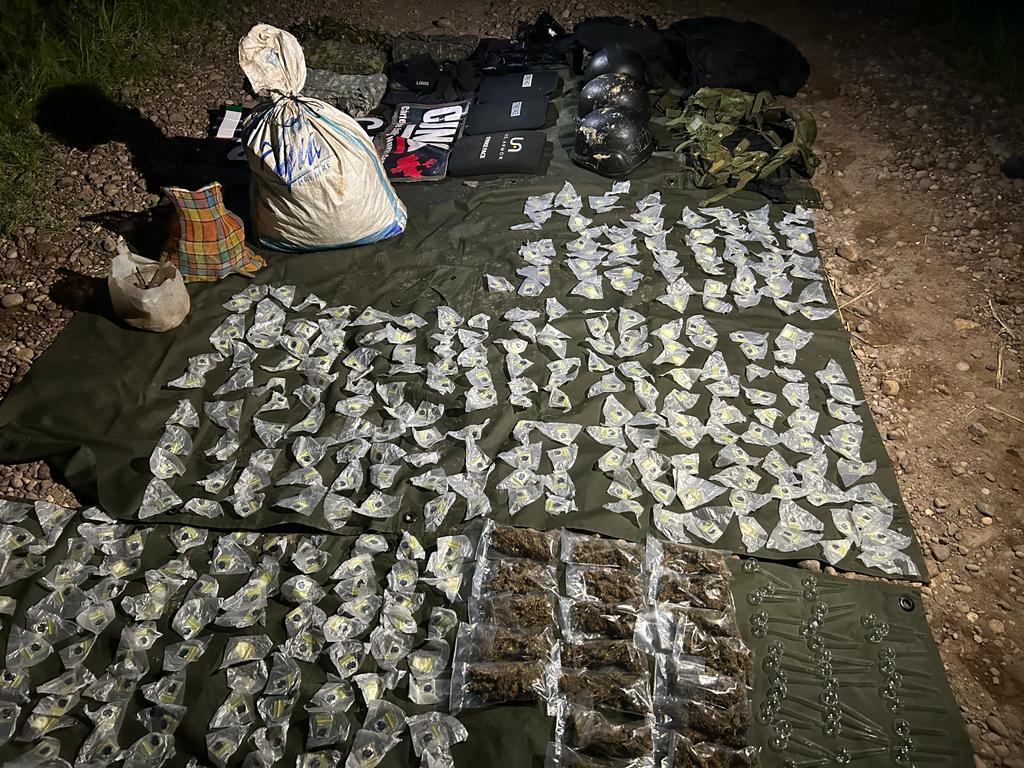 las características de la marihuana, 60 pipas de cristal, equipo táctico y