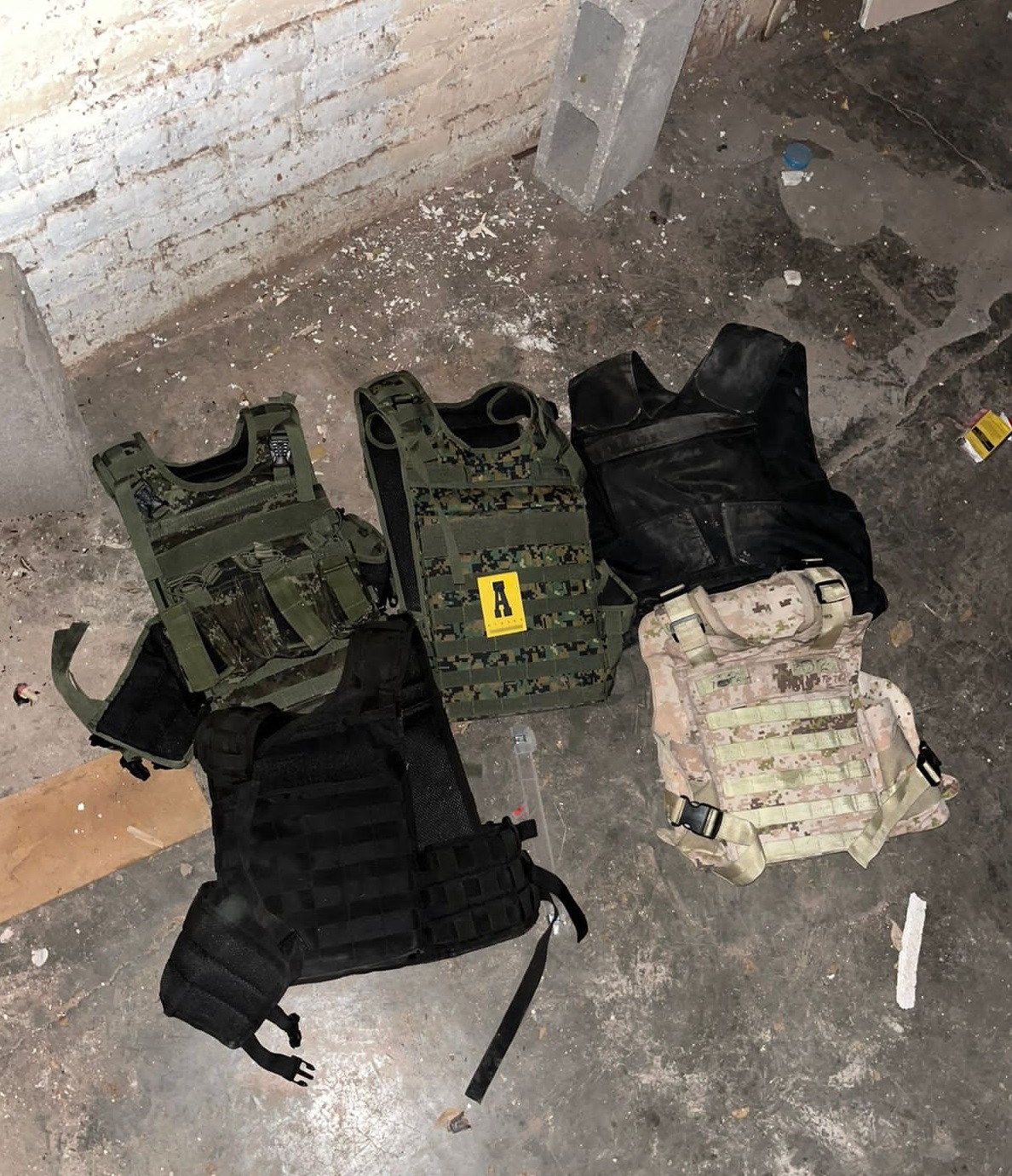 calibres, cinco chalecos balísticos y una mochila con prendas de vestir con