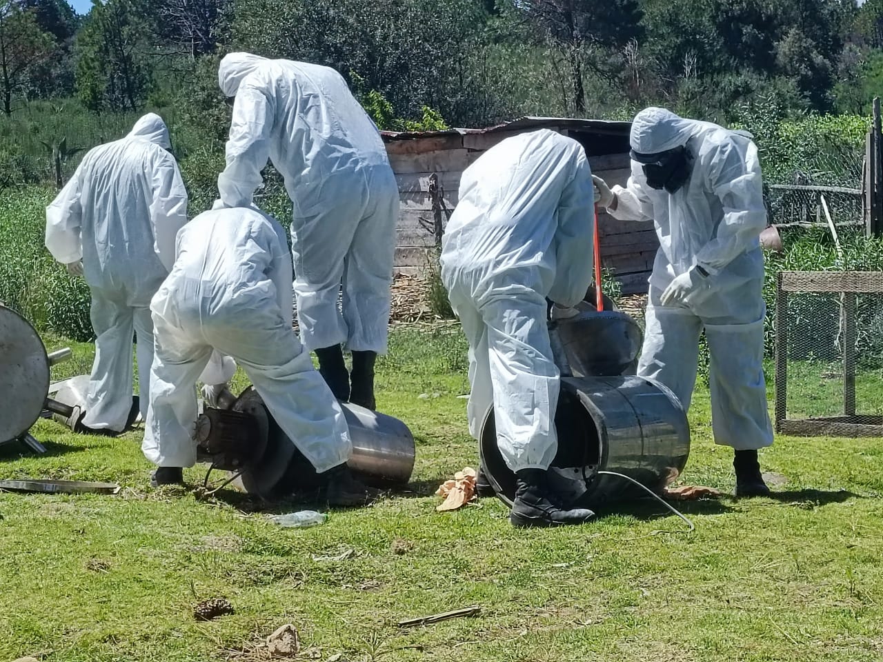 se aseguró un inmueble, bidones, costales, recipientes metálicos, una centrifugadora,