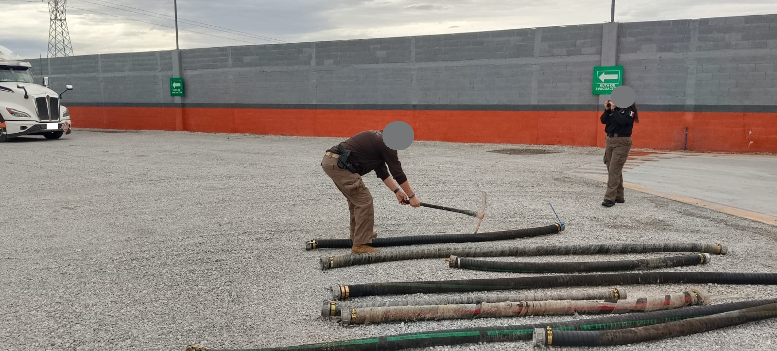 Las autoridades también aseguraron una bomba de trasferencia con cuenta litros, interconectada con implementos, una manguera con una pistola despachadora, ocho mangueras de diversas longitudes y diámetros de alta presión.