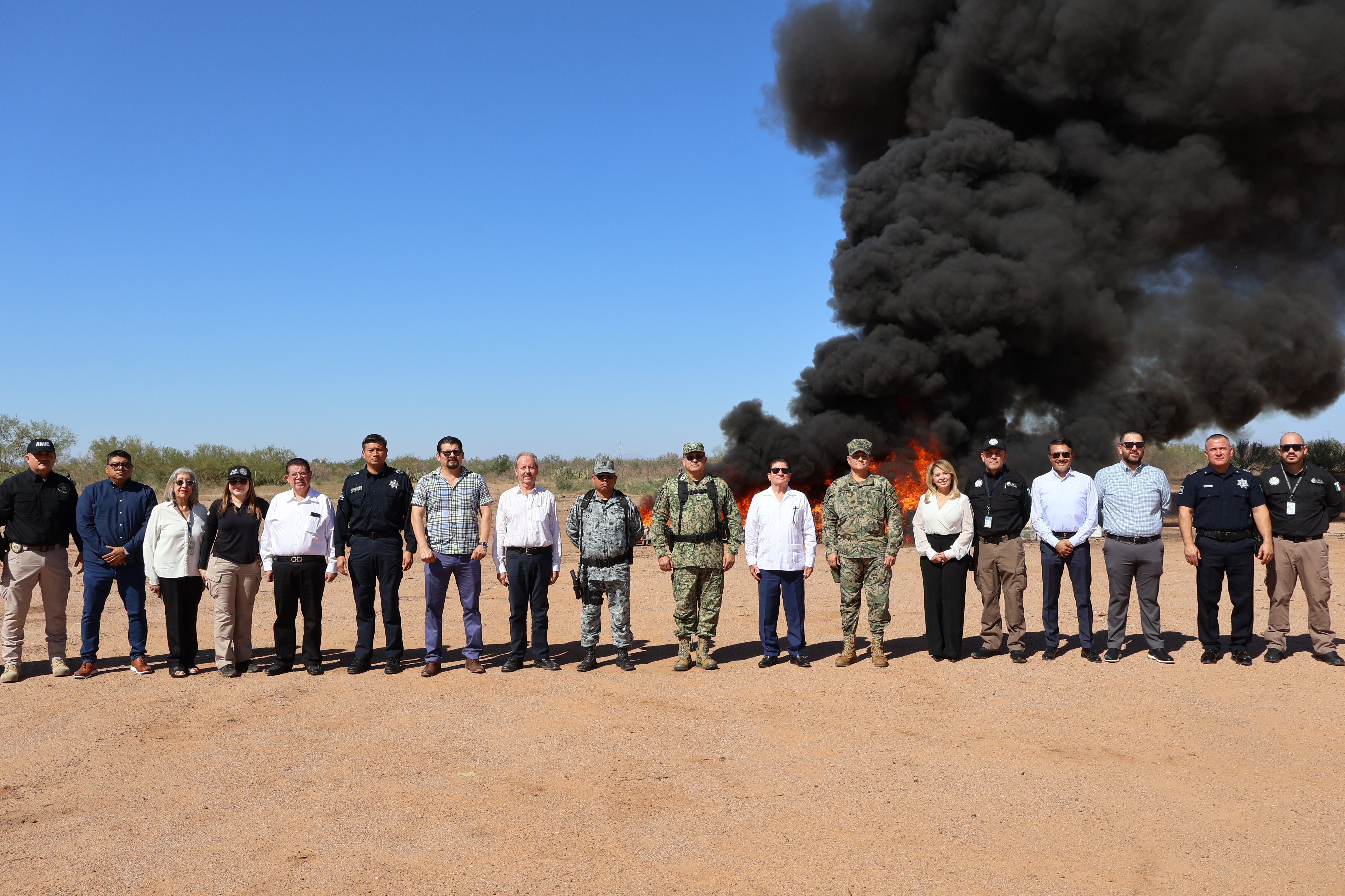 La Fiscalía Federal en Sonora instruyó la destrucción de los enervantes bajo la supervisión de personal del Órgano Interno de Control (OIC) y de la Fiscalía Especializada en Materia de Delincuencia Organizada (FEMDO, quienes comprobaron el peso de la droga y acreditaron la legalidad de la incineración.