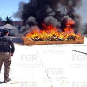Estatal Tepic, Nayarit 09 de abril de 2026 Comunicado FGR DPE/1470/2026 FGR lleva a cabo evento de incineración de más de dos toneladas de narcóticos y 592 máquinas tragamonedas