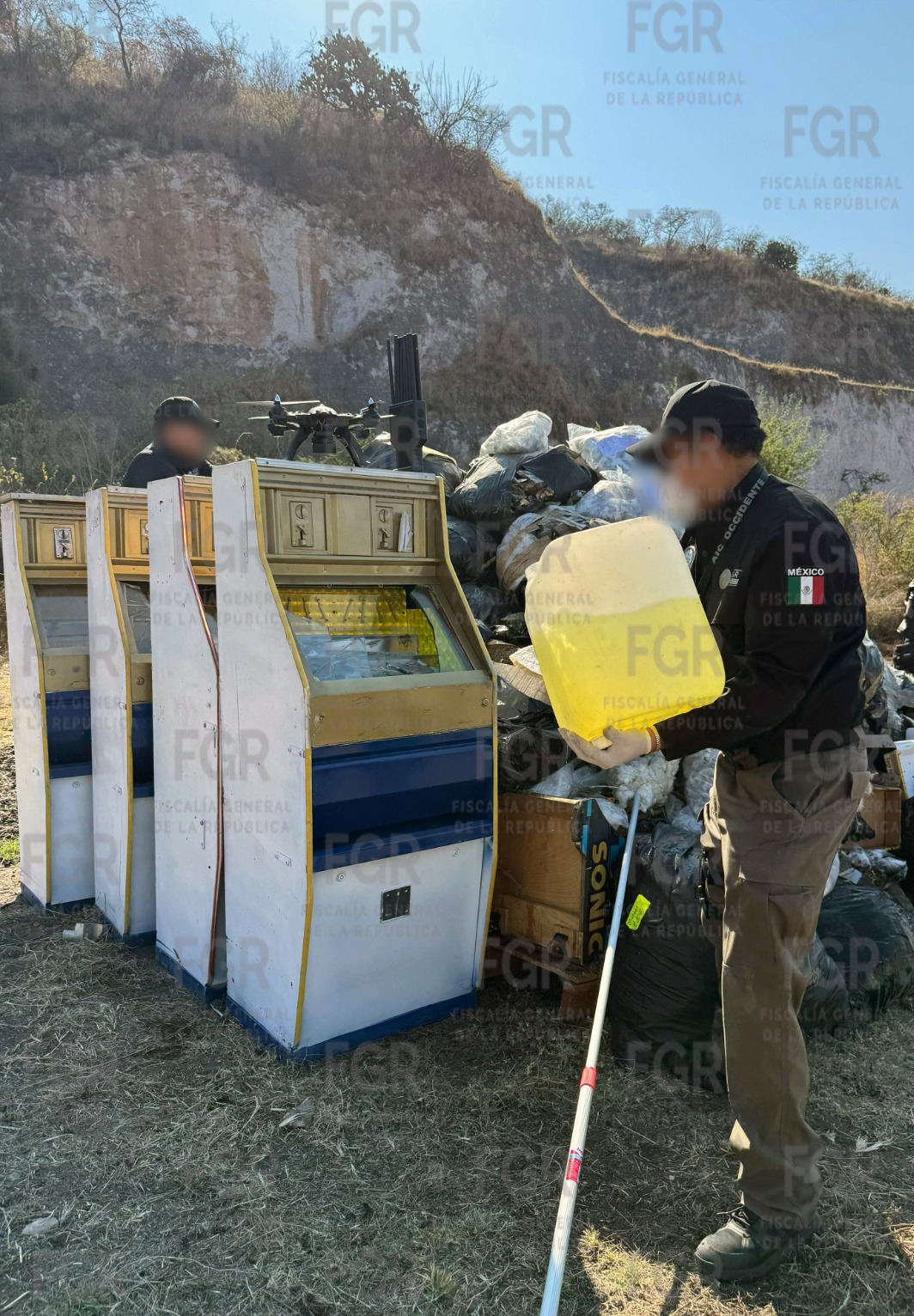La diligencia se llevó a cabo en instalaciones acondicionadas para tales efectos en León, Guanajuato, con la presencia del Grupo de Inteligencia Operativa (GIO) del estado de Guanajuato, del personal de la FGR, de Policía Federal Ministerial (PFM), de la Agencia de Investigación Criminal (AIC), así como la supervisión, para dar fe y legalidad del Órgano Interno de Control (OIC), de esta Institución, para dar certeza del tipo y peso de los narcóticos.